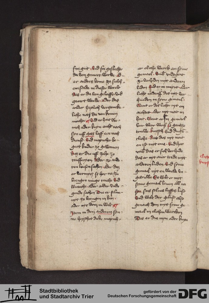 TextGrid Repository (2017). Stadtbibliothek und Stadtarchiv Trier, 814/1340 4°: Sammelhandschrift. Inhalte. Stadtbibliothek und Stadtarchiv Trier Hs. 814/1340 4°. Dialog über die Kardinaltugenden. Blatt 28v. Blatt 28v. Virtuelles Skriptorium St. Matthias. Stadtbibliothek und Stadtarchiv Trier. https://hdl.handle.net/11378/0000-000A-023D-0
