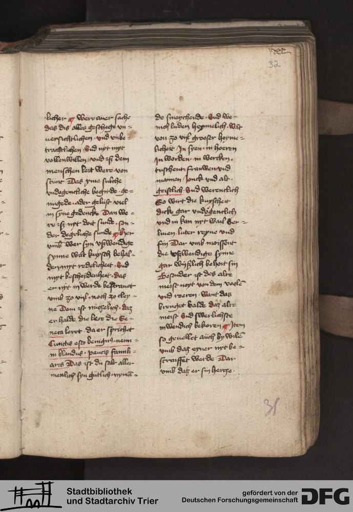 - TextGrid Repository (2017). Stadtbibliothek und Stadtarchiv Trier, 814/1340 4°: Sammelhandschrift. Inhalte. Stadtbibliothek und Stadtarchiv Trier Hs. 814/1340 4°. Dialog über die Kardinaltugenden. Blatt 31r. Blatt 31r. Virtuelles Skriptorium St. Matthias. Stadtbibliothek und Stadtarchiv Trier. https://hdl.handle.net/11378/0000-000A-0247-4