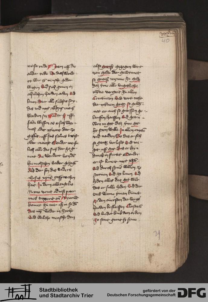 TextGrid Repository (2017). Stadtbibliothek und Stadtarchiv Trier, 814/1340 4°: Sammelhandschrift. Inhalte. Stadtbibliothek und Stadtarchiv Trier Hs. 814/1340 4°. Dialog über die Kardinaltugenden. Blatt 39r. Blatt 39r. Virtuelles Skriptorium St. Matthias. Stadtbibliothek und Stadtarchiv Trier. https://hdl.handle.net/11378/0000-000A-0267-0