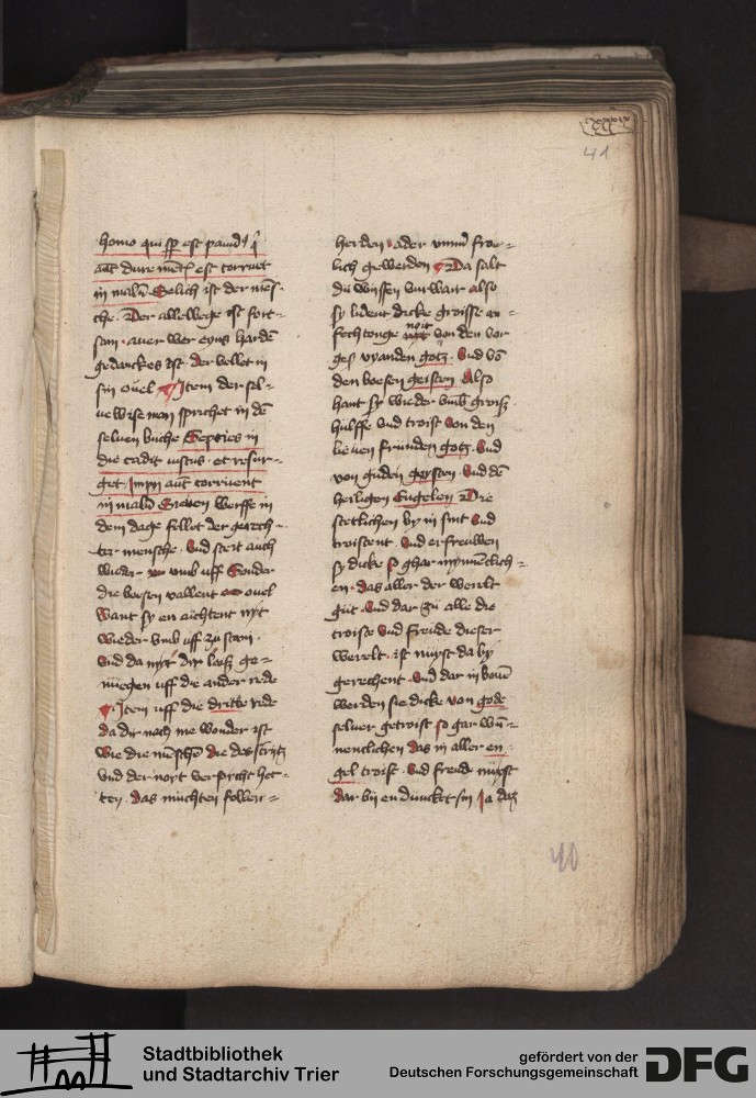- TextGrid Repository (2017). Stadtbibliothek und Stadtarchiv Trier, 814/1340 4°: Sammelhandschrift. Inhalte. Stadtbibliothek und Stadtarchiv Trier Hs. 814/1340 4°. Dialog über die Kardinaltugenden. Blatt 40r. Blatt 40r. Virtuelles Skriptorium St. Matthias. Stadtbibliothek und Stadtarchiv Trier. https://hdl.handle.net/11378/0000-000A-026B-C