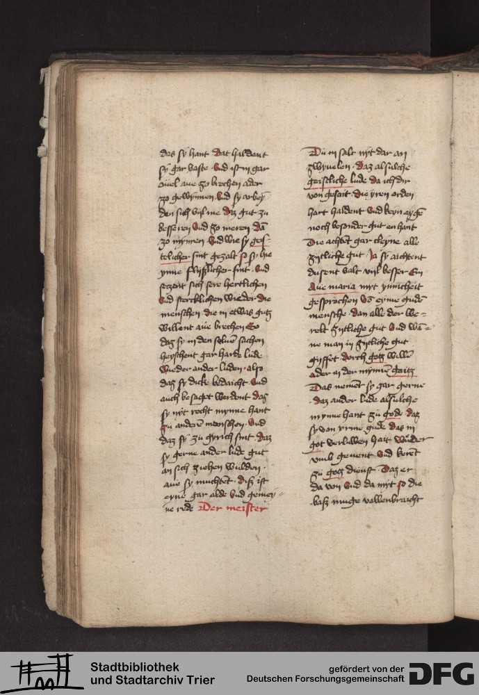 - TextGrid Repository (2017). Stadtbibliothek und Stadtarchiv Trier, 814/1340 4°: Sammelhandschrift. Inhalte. Stadtbibliothek und Stadtarchiv Trier Hs. 814/1340 4°. Dialog über die Kardinaltugenden. Blatt 41v. Blatt 41v. Virtuelles Skriptorium St. Matthias. Stadtbibliothek und Stadtarchiv Trier. https://hdl.handle.net/11378/0000-000A-0271-4