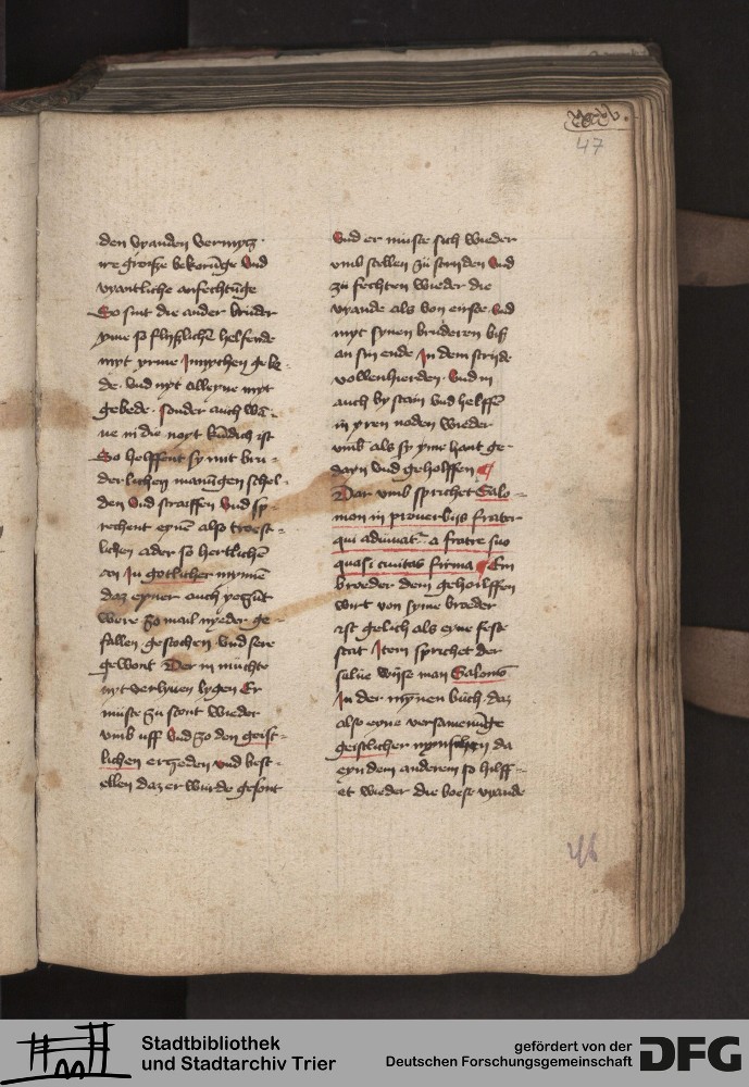 - TextGrid Repository (2017). Stadtbibliothek und Stadtarchiv Trier, 814/1340 4°: Sammelhandschrift. Inhalte. Stadtbibliothek und Stadtarchiv Trier Hs. 814/1340 4°. Dialog über die Kardinaltugenden. Blatt 46r. Blatt 46r. Virtuelles Skriptorium St. Matthias. Stadtbibliothek und Stadtarchiv Trier. https://hdl.handle.net/11378/0000-000A-0283-F