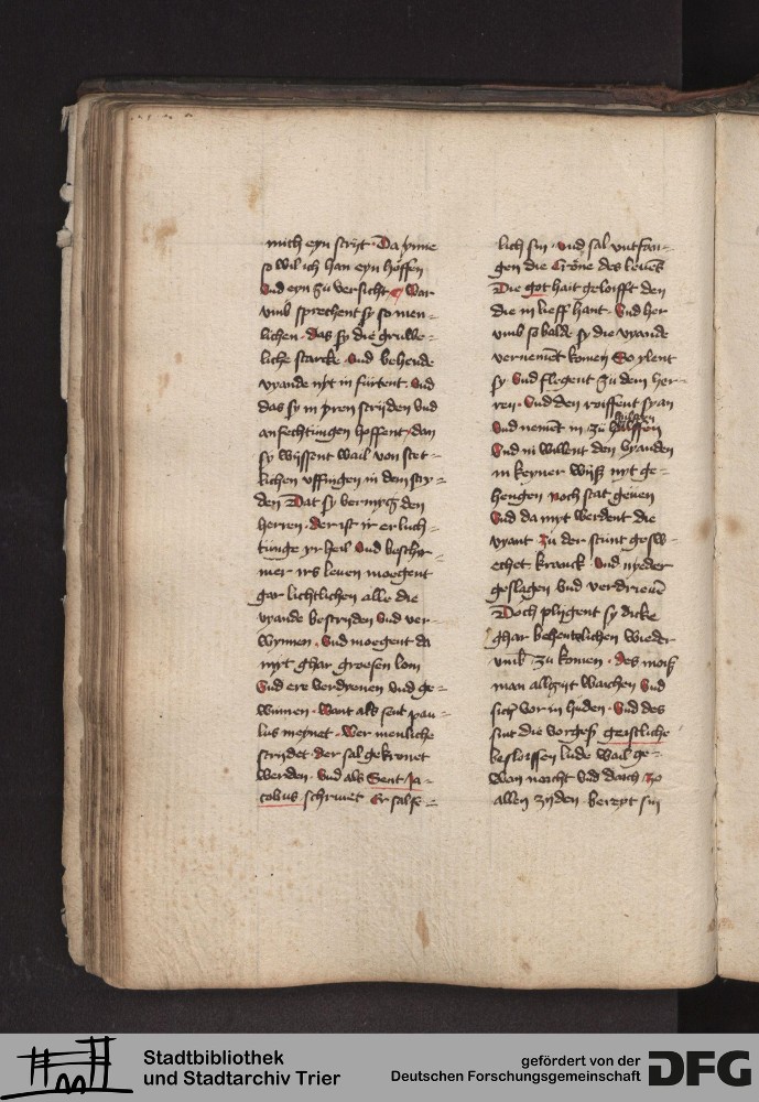 TextGrid Repository (2017). Stadtbibliothek und Stadtarchiv Trier, 814/1340 4°: Sammelhandschrift. Inhalte. Stadtbibliothek und Stadtarchiv Trier Hs. 814/1340 4°. Dialog über die Kardinaltugenden. Blatt 49v. Blatt 49v. Virtuelles Skriptorium St. Matthias. Stadtbibliothek und Stadtarchiv Trier. https://hdl.handle.net/11378/0000-000A-0291-F