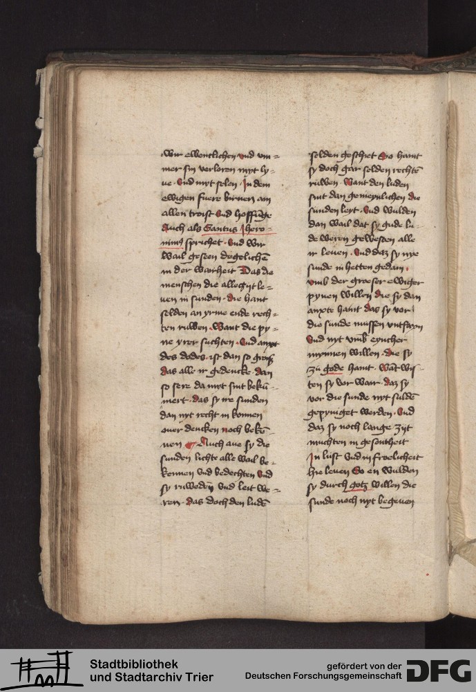 - TextGrid Repository (2017). Stadtbibliothek und Stadtarchiv Trier, 814/1340 4°: Sammelhandschrift. Inhalte. Stadtbibliothek und Stadtarchiv Trier Hs. 814/1340 4°. Dialog über die Kardinaltugenden. Blatt 51v. Blatt 51v. Virtuelles Skriptorium St. Matthias. Stadtbibliothek und Stadtarchiv Trier. https://hdl.handle.net/11378/0000-000A-0299-7
