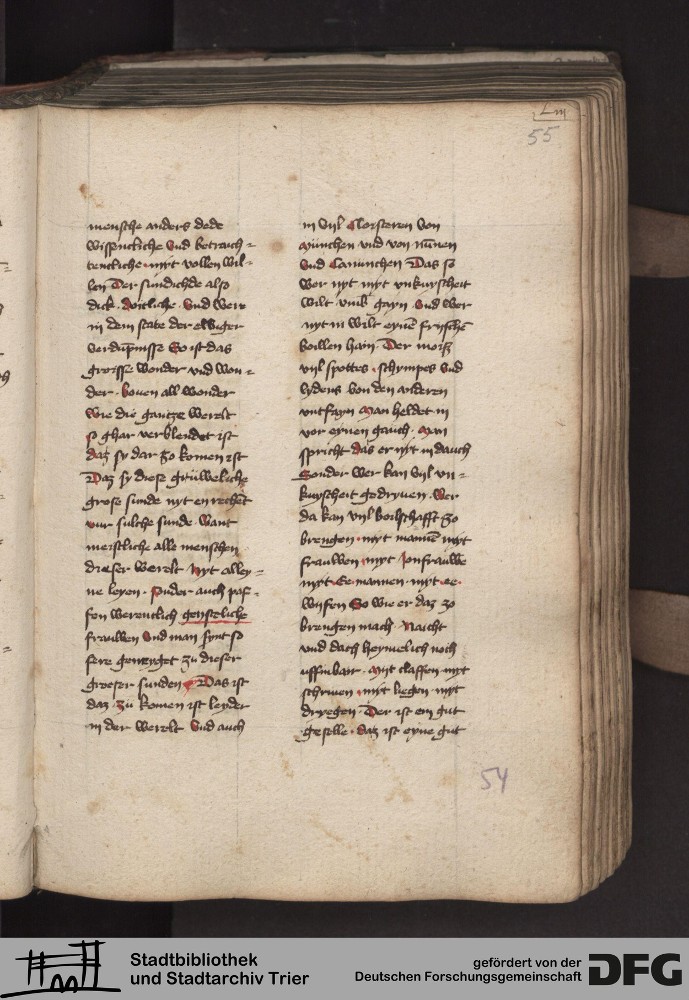 TextGrid Repository (2017). Stadtbibliothek und Stadtarchiv Trier, 814/1340 4°: Sammelhandschrift. Inhalte. Stadtbibliothek und Stadtarchiv Trier Hs. 814/1340 4°. Dialog über die Kardinaltugenden. Blatt 54r. Blatt 54r. Virtuelles Skriptorium St. Matthias. Stadtbibliothek und Stadtarchiv Trier. https://hdl.handle.net/11378/0000-000A-02A3-B