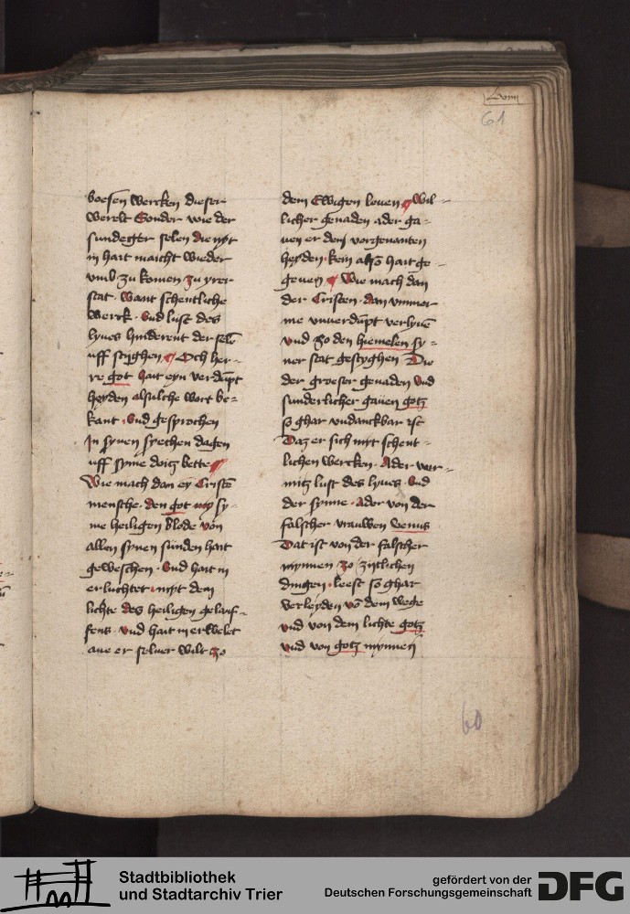 - TextGrid Repository (2017). Stadtbibliothek und Stadtarchiv Trier, 814/1340 4°: Sammelhandschrift. Inhalte. Stadtbibliothek und Stadtarchiv Trier Hs. 814/1340 4°. Dialog über die Kardinaltugenden. Blatt 60r. Blatt 60r. Virtuelles Skriptorium St. Matthias. Stadtbibliothek und Stadtarchiv Trier. https://hdl.handle.net/11378/0000-000A-02BB-1