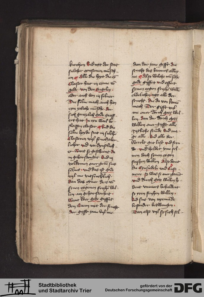 - TextGrid Repository (2017). Stadtbibliothek und Stadtarchiv Trier, 814/1340 4°: Sammelhandschrift. Inhalte. Stadtbibliothek und Stadtarchiv Trier Hs. 814/1340 4°. Dialog über die Kardinaltugenden. Blatt 63v. Blatt 63v. Virtuelles Skriptorium St. Matthias. Stadtbibliothek und Stadtarchiv Trier. https://hdl.handle.net/11378/0000-000A-02C9-1
