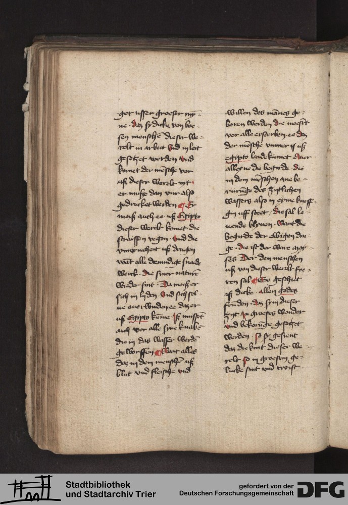 - TextGrid Repository (2017). Stadtbibliothek und Stadtarchiv Trier, 814/1340 4°: Sammelhandschrift. Inhalte. Stadtbibliothek und Stadtarchiv Trier Hs. 814/1340 4°. Dialog über die Kardinaltugenden. Blatt 72v. Blatt 72v. Virtuelles Skriptorium St. Matthias. Stadtbibliothek und Stadtarchiv Trier. https://hdl.handle.net/11378/0000-000A-02ED-9