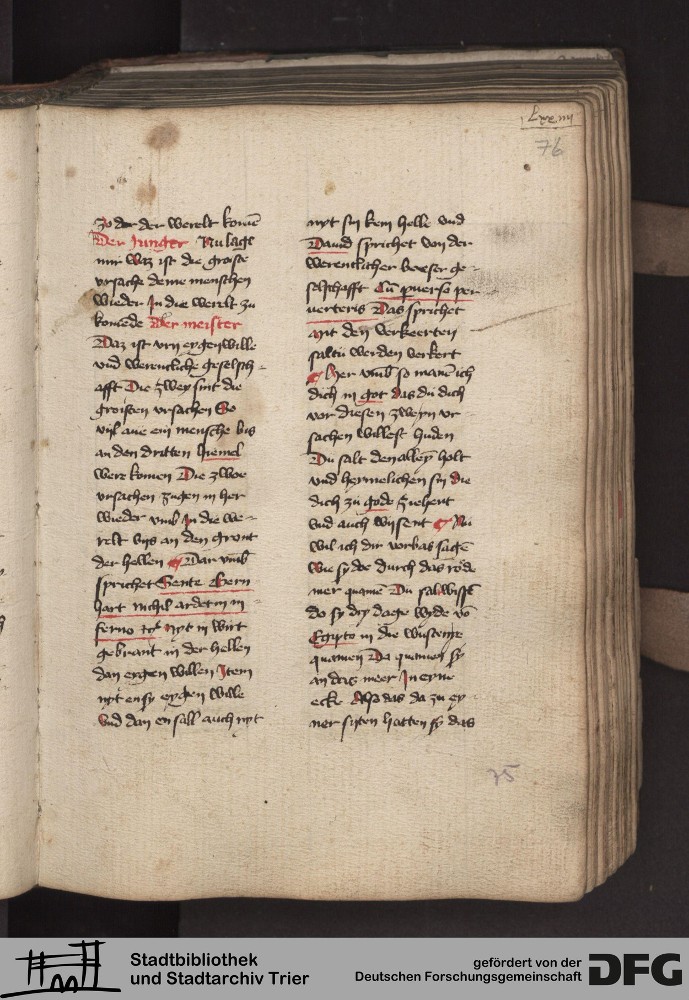 - TextGrid Repository (2017). Stadtbibliothek und Stadtarchiv Trier, 814/1340 4°: Sammelhandschrift. Inhalte. Stadtbibliothek und Stadtarchiv Trier Hs. 814/1340 4°. Dialog über die Kardinaltugenden. Blatt 75r. Blatt 75r. Virtuelles Skriptorium St. Matthias. Stadtbibliothek und Stadtarchiv Trier. https://hdl.handle.net/11378/0000-000A-02F7-D