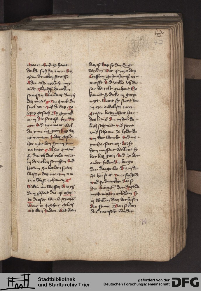 TextGrid Repository (2017). Stadtbibliothek und Stadtarchiv Trier, 814/1340 4°: Sammelhandschrift. Inhalte. Stadtbibliothek und Stadtarchiv Trier Hs. 814/1340 4°. Dialog über die Kardinaltugenden. Blatt 76r. Blatt 76r. Virtuelles Skriptorium St. Matthias. Stadtbibliothek und Stadtarchiv Trier. https://hdl.handle.net/11378/0000-000A-02FB-9