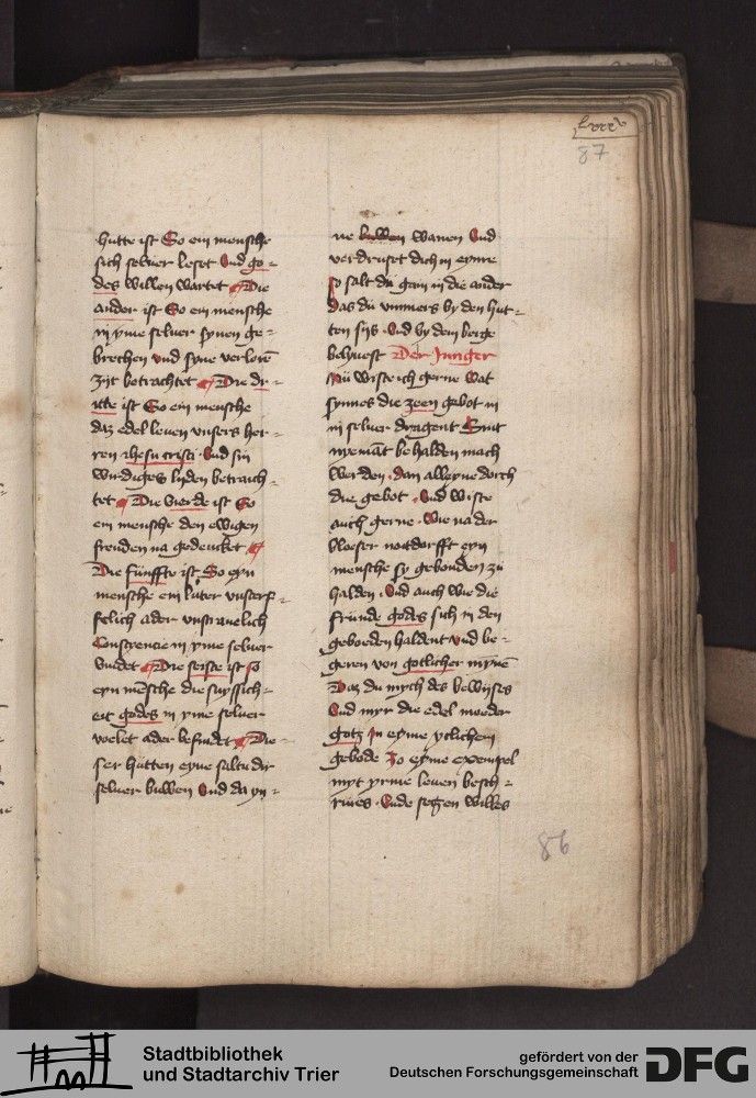 - TextGrid Repository (2017). Stadtbibliothek und Stadtarchiv Trier, 814/1340 4°: Sammelhandschrift. Inhalte. Stadtbibliothek und Stadtarchiv Trier Hs. 814/1340 4°. Dialog über die Kardinaltugenden. Blatt 86r. Blatt 86r. Virtuelles Skriptorium St. Matthias. Stadtbibliothek und Stadtarchiv Trier. https://hdl.handle.net/11378/0000-000A-0323-B