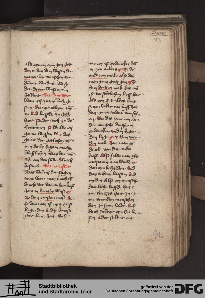 TextGrid Repository (2017). Stadtbibliothek und Stadtarchiv Trier, 814/1340 4°: Sammelhandschrift. Inhalte. Stadtbibliothek und Stadtarchiv Trier Hs. 814/1340 4°. Dialog über die 10 Gebote. Blatt 92r. Blatt 92r. Virtuelles Skriptorium St. Matthias. Stadtbibliothek und Stadtarchiv Trier. https://hdl.handle.net/11378/0000-000A-033B-1