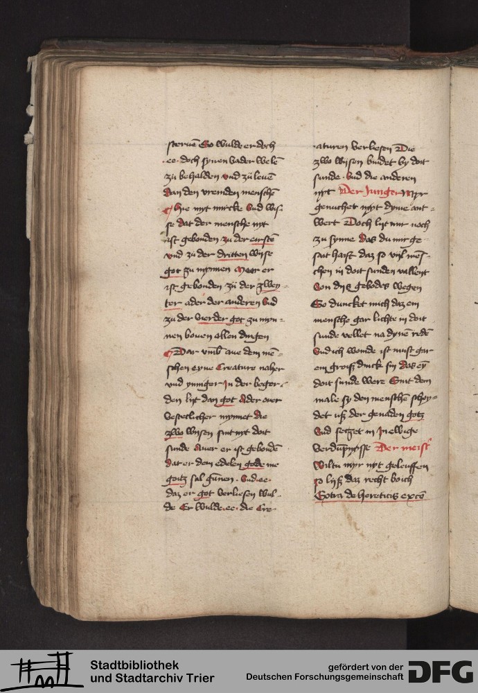 - TextGrid Repository (2017). Stadtbibliothek und Stadtarchiv Trier, 814/1340 4°: Sammelhandschrift. Inhalte. Stadtbibliothek und Stadtarchiv Trier Hs. 814/1340 4°. Dialog über die 10 Gebote. Blatt 92v. Blatt 92v. Virtuelles Skriptorium St. Matthias. Stadtbibliothek und Stadtarchiv Trier. https://hdl.handle.net/11378/0000-000A-033D-F