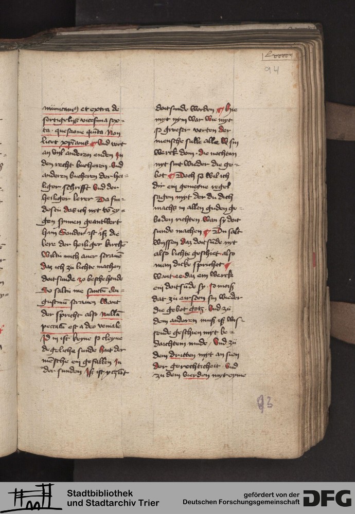 TextGrid Repository (2017). Stadtbibliothek und Stadtarchiv Trier, 814/1340 4°: Sammelhandschrift. Inhalte. Stadtbibliothek und Stadtarchiv Trier Hs. 814/1340 4°. Dialog über die 10 Gebote. Blatt 93r. Blatt 93r. Virtuelles Skriptorium St. Matthias. Stadtbibliothek und Stadtarchiv Trier. https://hdl.handle.net/11378/0000-000A-033F-D