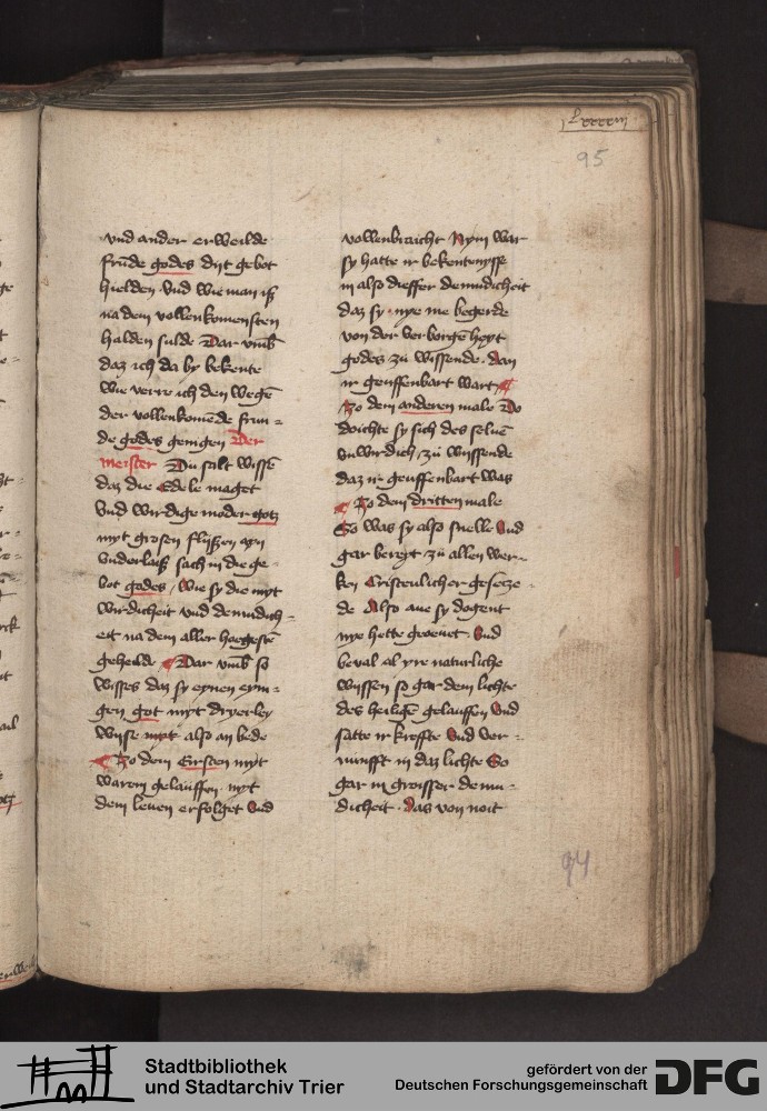 - TextGrid Repository (2017). Stadtbibliothek und Stadtarchiv Trier, 814/1340 4°: Sammelhandschrift. Inhalte. Stadtbibliothek und Stadtarchiv Trier Hs. 814/1340 4°. Dialog über die 10 Gebote. Blatt 94r. Blatt 94r. Virtuelles Skriptorium St. Matthias. Stadtbibliothek und Stadtarchiv Trier. https://hdl.handle.net/11378/0000-000A-0343-7