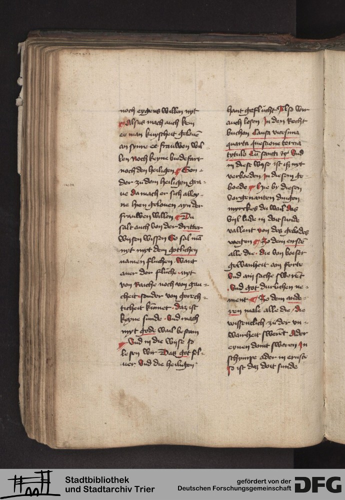 - TextGrid Repository (2017). Stadtbibliothek und Stadtarchiv Trier, 814/1340 4°: Sammelhandschrift. Inhalte. Stadtbibliothek und Stadtarchiv Trier Hs. 814/1340 4°. Dialog über die 10 Gebote. Blatt 98v. Blatt 98v. Virtuelles Skriptorium St. Matthias. Stadtbibliothek und Stadtarchiv Trier. https://hdl.handle.net/11378/0000-000A-0355-3