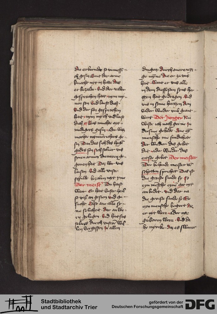 - TextGrid Repository (2017). Stadtbibliothek und Stadtarchiv Trier, 814/1340 4°: Sammelhandschrift. Inhalte. Stadtbibliothek und Stadtarchiv Trier Hs. 814/1340 4°. Dialog über die 10 Gebote. Blatt 102v. Blatt 102v. Virtuelles Skriptorium St. Matthias. Stadtbibliothek und Stadtarchiv Trier. https://hdl.handle.net/11378/0000-000A-0365-1
