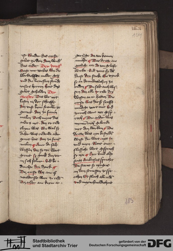 - TextGrid Repository (2017). Stadtbibliothek und Stadtarchiv Trier, 814/1340 4°: Sammelhandschrift. Inhalte. Stadtbibliothek und Stadtarchiv Trier Hs. 814/1340 4°. Dialog über die 10 Gebote. Blatt 103r. Blatt 103r. Virtuelles Skriptorium St. Matthias. Stadtbibliothek und Stadtarchiv Trier. https://hdl.handle.net/11378/0000-000A-0367-F