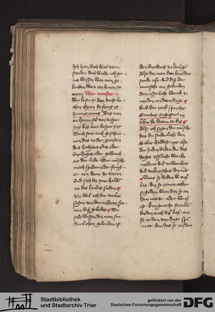 - TextGrid Repository (2017). Stadtbibliothek und Stadtarchiv Trier, 814/1340 4°: Sammelhandschrift. Inhalte. Stadtbibliothek und Stadtarchiv Trier Hs. 814/1340 4°. Dialog über die 10 Gebote. Blatt 107v. Blatt 107v. Virtuelles Skriptorium St. Matthias. Stadtbibliothek und Stadtarchiv Trier. https://hdl.handle.net/11378/0000-000A-0379-B