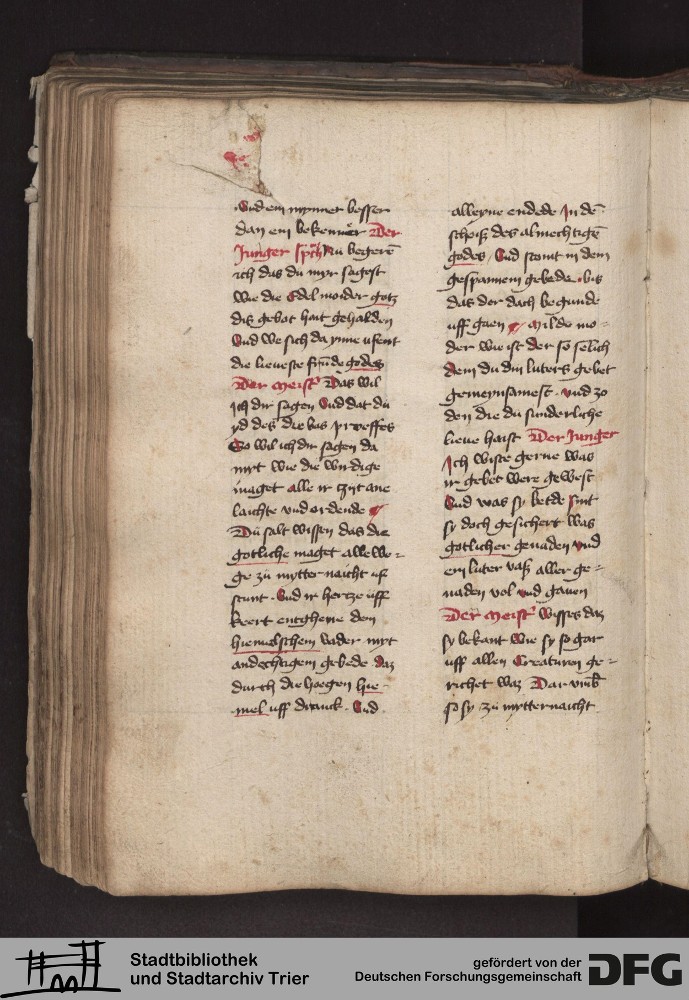- TextGrid Repository (2017). Stadtbibliothek und Stadtarchiv Trier, 814/1340 4°: Sammelhandschrift. Inhalte. Stadtbibliothek und Stadtarchiv Trier Hs. 814/1340 4°. Dialog über die 10 Gebote. Blatt 112v. Blatt 112v. Virtuelles Skriptorium St. Matthias. Stadtbibliothek und Stadtarchiv Trier. https://hdl.handle.net/11378/0000-000A-038D-4