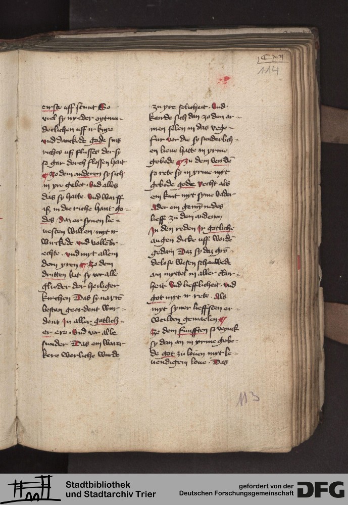 - TextGrid Repository (2017). Stadtbibliothek und Stadtarchiv Trier, 814/1340 4°: Sammelhandschrift. Inhalte. Stadtbibliothek und Stadtarchiv Trier Hs. 814/1340 4°. Dialog über die 10 Gebote. Blatt 113r. Blatt 113r. Virtuelles Skriptorium St. Matthias. Stadtbibliothek und Stadtarchiv Trier. https://hdl.handle.net/11378/0000-000A-038F-2