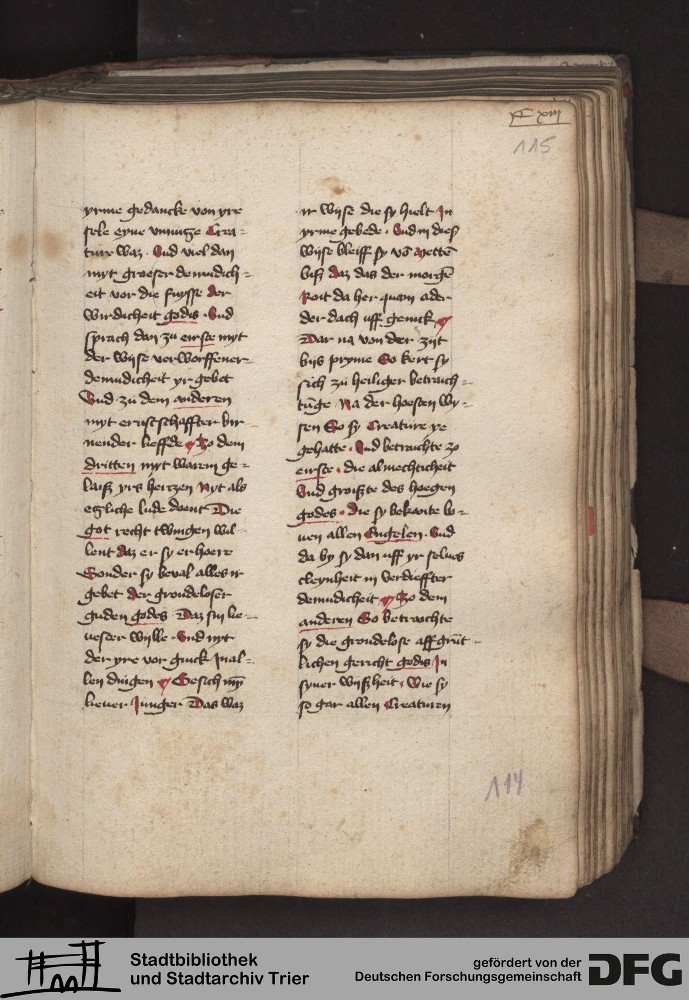 - TextGrid Repository (2017). Stadtbibliothek und Stadtarchiv Trier, 814/1340 4°: Sammelhandschrift. Inhalte. Stadtbibliothek und Stadtarchiv Trier Hs. 814/1340 4°. Dialog über die 10 Gebote. Blatt 114r. Blatt 114r. Virtuelles Skriptorium St. Matthias. Stadtbibliothek und Stadtarchiv Trier. https://hdl.handle.net/11378/0000-000A-0393-C