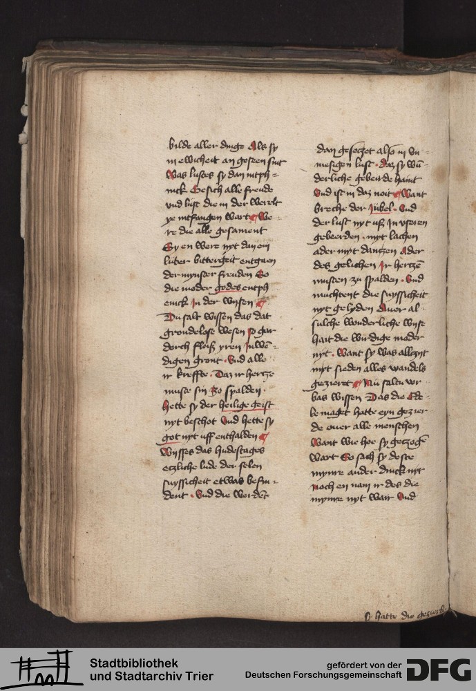 - TextGrid Repository (2017). Stadtbibliothek und Stadtarchiv Trier, 814/1340 4°: Sammelhandschrift. Inhalte. Stadtbibliothek und Stadtarchiv Trier Hs. 814/1340 4°. Dialog über die 10 Gebote. Blatt 117v. Blatt 117v. Virtuelles Skriptorium St. Matthias. Stadtbibliothek und Stadtarchiv Trier. https://hdl.handle.net/11378/0000-000A-03A1-C