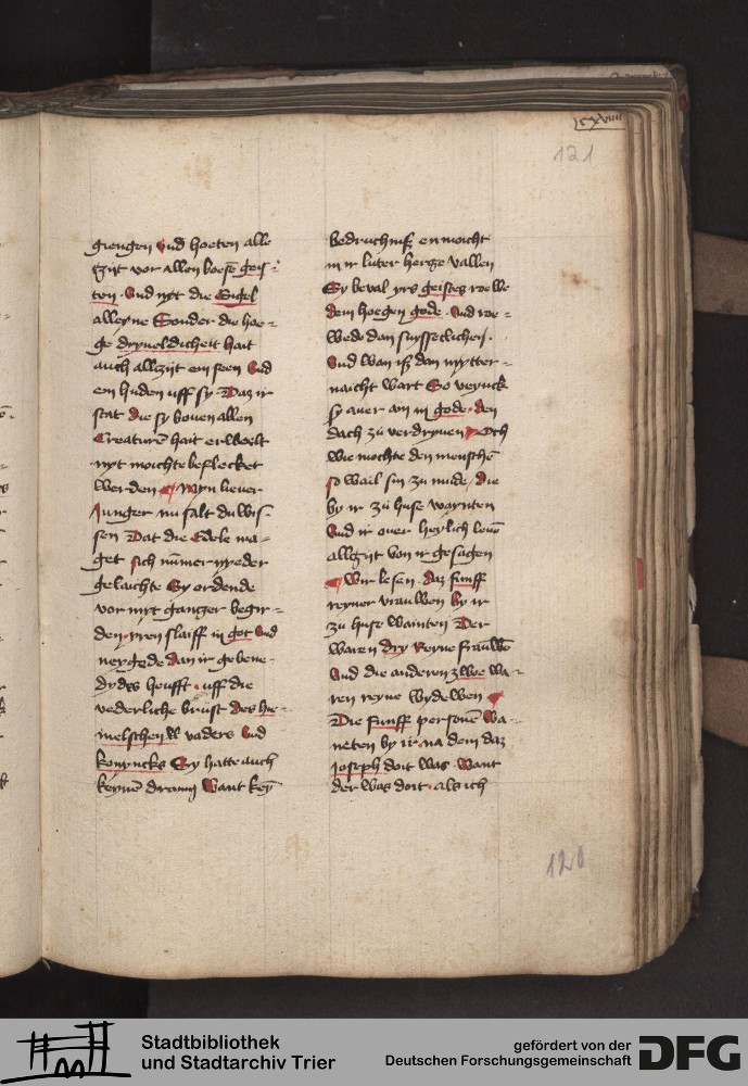 - TextGrid Repository (2017). Stadtbibliothek und Stadtarchiv Trier, 814/1340 4°: Sammelhandschrift. Inhalte. Stadtbibliothek und Stadtarchiv Trier Hs. 814/1340 4°. Dialog über die 10 Gebote. Blatt 120r. Blatt 120r. Virtuelles Skriptorium St. Matthias. Stadtbibliothek und Stadtarchiv Trier. https://hdl.handle.net/11378/0000-000A-03AB-2