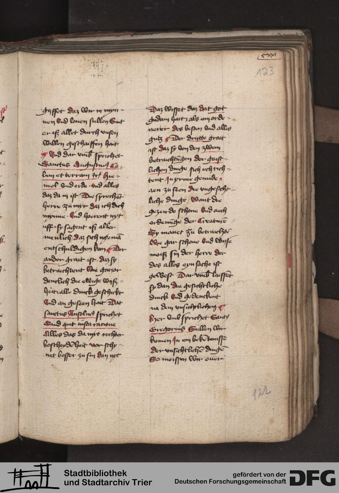 - TextGrid Repository (2017). Stadtbibliothek und Stadtarchiv Trier, 814/1340 4°: Sammelhandschrift. Inhalte. Stadtbibliothek und Stadtarchiv Trier Hs. 814/1340 4°. Dialog über die 10 Gebote. Blatt 122r. Blatt 122r. Virtuelles Skriptorium St. Matthias. Stadtbibliothek und Stadtarchiv Trier. https://hdl.handle.net/11378/0000-000A-03B3-8