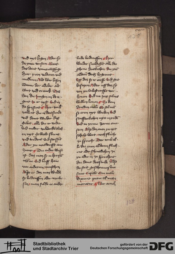 - TextGrid Repository (2017). Stadtbibliothek und Stadtarchiv Trier, 814/1340 4°: Sammelhandschrift. Inhalte. Stadtbibliothek und Stadtarchiv Trier Hs. 814/1340 4°. Dialog über die 10 Gebote. Blatt 124r. Blatt 124r. Virtuelles Skriptorium St. Matthias. Stadtbibliothek und Stadtarchiv Trier. https://hdl.handle.net/11378/0000-000A-03BB-0
