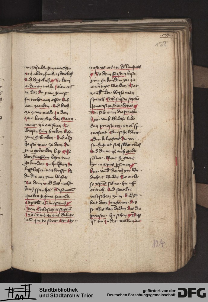 - TextGrid Repository (2017). Stadtbibliothek und Stadtarchiv Trier, 814/1340 4°: Sammelhandschrift. Inhalte. Stadtbibliothek und Stadtarchiv Trier Hs. 814/1340 4°. Dialog über die 10 Gebote. Blatt 127r. Blatt 127r. Virtuelles Skriptorium St. Matthias. Stadtbibliothek und Stadtarchiv Trier. https://hdl.handle.net/11378/0000-000A-03C7-2