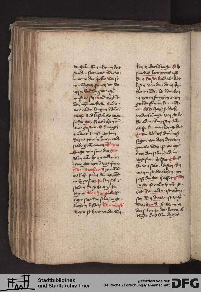 - TextGrid Repository (2017). Stadtbibliothek und Stadtarchiv Trier, 814/1340 4°: Sammelhandschrift. Inhalte. Stadtbibliothek und Stadtarchiv Trier Hs. 814/1340 4°. Dialog über die 10 Gebote. Blatt 129v. Blatt 129v. Virtuelles Skriptorium St. Matthias. Stadtbibliothek und Stadtarchiv Trier. https://hdl.handle.net/11378/0000-000A-03D1-6