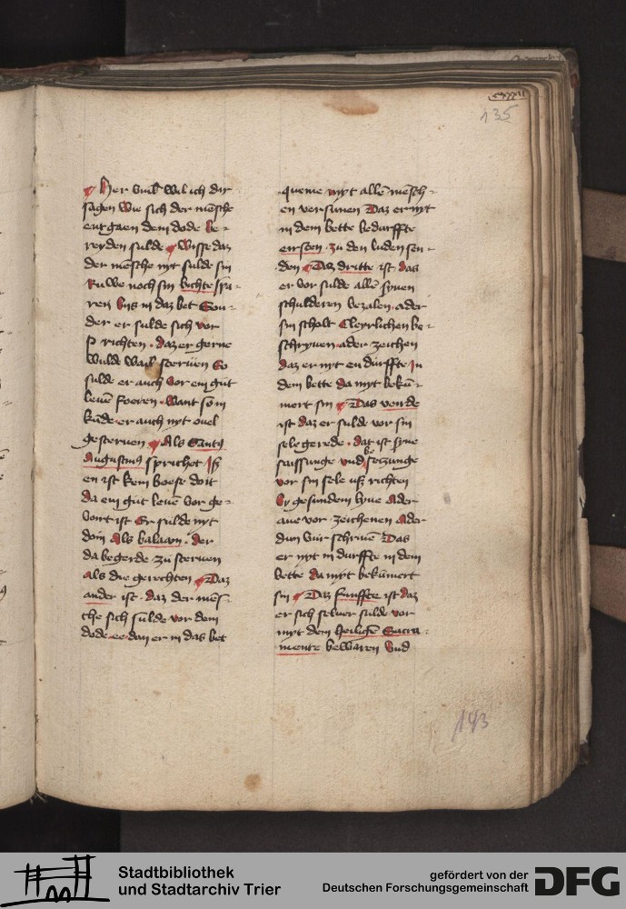 - TextGrid Repository (2017). Stadtbibliothek und Stadtarchiv Trier, 814/1340 4°: Sammelhandschrift. Inhalte. Stadtbibliothek und Stadtarchiv Trier Hs. 814/1340 4°. Dialog über die 10 Gebote. Blatt 134r. Blatt 134r. Virtuelles Skriptorium St. Matthias. Stadtbibliothek und Stadtarchiv Trier. https://hdl.handle.net/11378/0000-000A-03E3-2