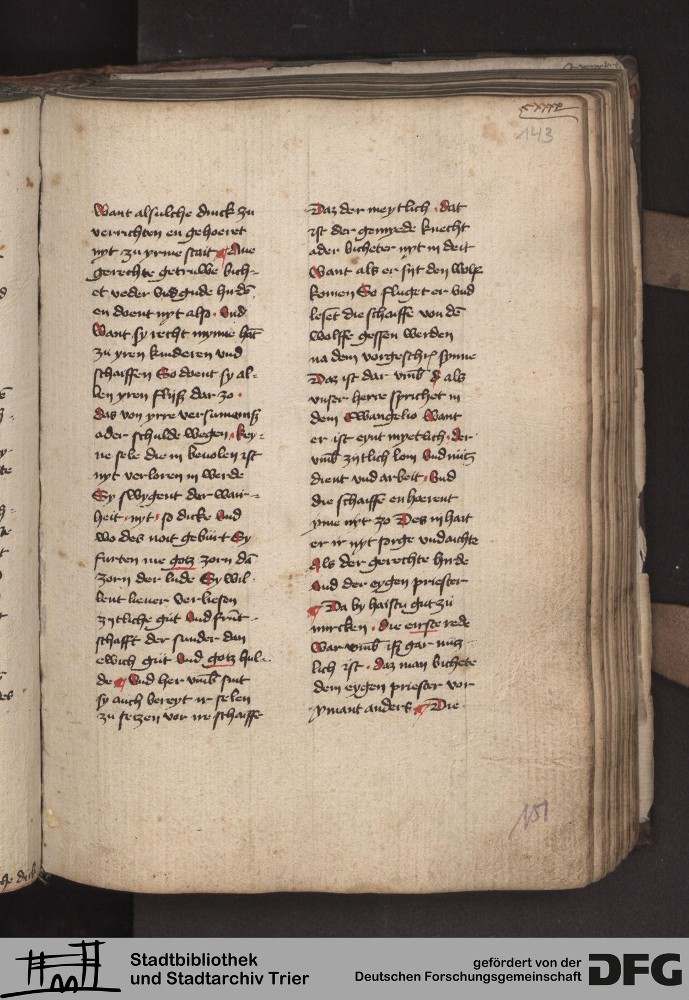 - TextGrid Repository (2017). Stadtbibliothek und Stadtarchiv Trier, 814/1340 4°: Sammelhandschrift. Inhalte. Stadtbibliothek und Stadtarchiv Trier Hs. 814/1340 4°. Dialog über die 10 Gebote. Blatt 142r. Blatt 142r. Virtuelles Skriptorium St. Matthias. Stadtbibliothek und Stadtarchiv Trier. https://hdl.handle.net/11378/0000-000A-0403-E