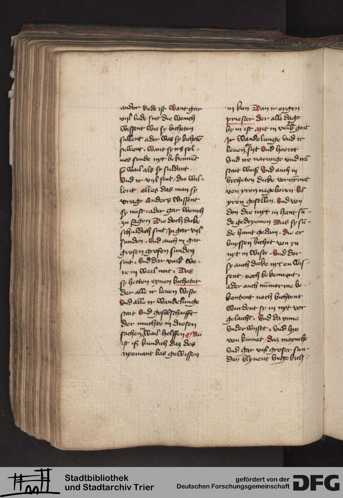 - TextGrid Repository (2017). Stadtbibliothek und Stadtarchiv Trier, 814/1340 4°: Sammelhandschrift. Inhalte. Stadtbibliothek und Stadtarchiv Trier Hs. 814/1340 4°. Dialog über die 10 Gebote. Blatt 142v. Blatt 142v. Virtuelles Skriptorium St. Matthias. Stadtbibliothek und Stadtarchiv Trier. https://hdl.handle.net/11378/0000-000A-0405-C