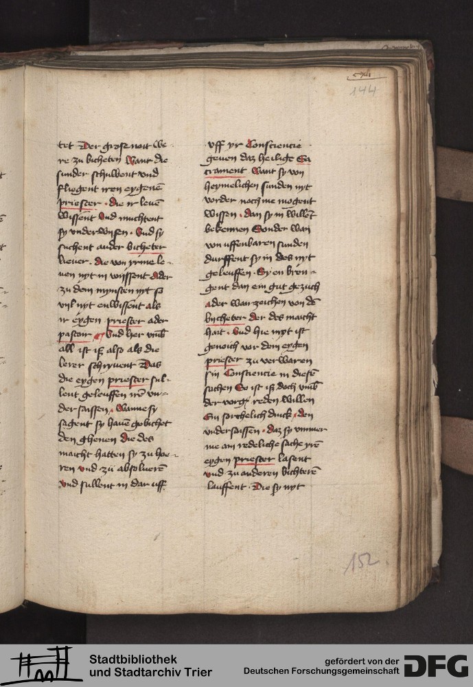 - TextGrid Repository (2017). Stadtbibliothek und Stadtarchiv Trier, 814/1340 4°: Sammelhandschrift. Inhalte. Stadtbibliothek und Stadtarchiv Trier Hs. 814/1340 4°. Dialog über die 10 Gebote. Blatt 143r. Blatt 143r. Virtuelles Skriptorium St. Matthias. Stadtbibliothek und Stadtarchiv Trier. https://hdl.handle.net/11378/0000-000A-0407-A