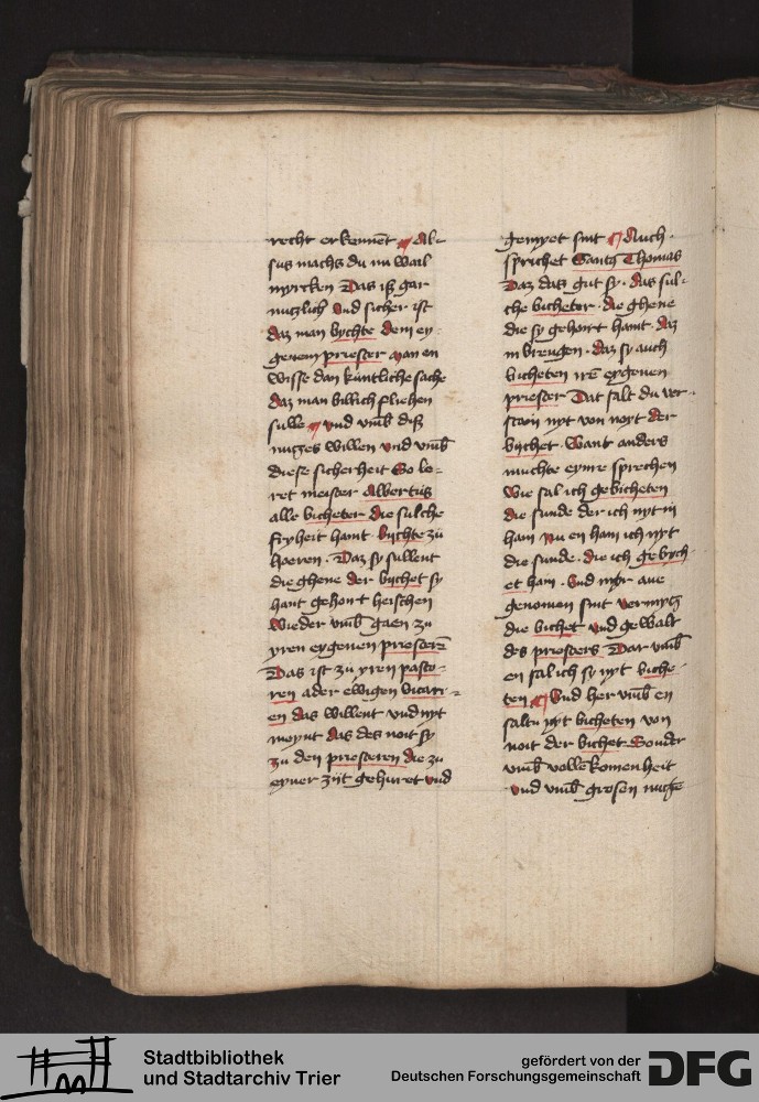 - TextGrid Repository (2017). Stadtbibliothek und Stadtarchiv Trier, 814/1340 4°: Sammelhandschrift. Inhalte. Stadtbibliothek und Stadtarchiv Trier Hs. 814/1340 4°. Dialog über die 10 Gebote. Blatt 143v. Blatt 143v. Virtuelles Skriptorium St. Matthias. Stadtbibliothek und Stadtarchiv Trier. https://hdl.handle.net/11378/0000-000A-0409-8