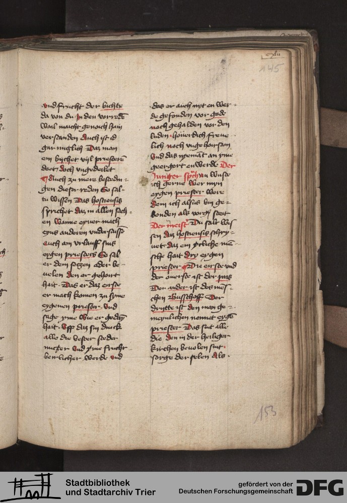 - TextGrid Repository (2017). Stadtbibliothek und Stadtarchiv Trier, 814/1340 4°: Sammelhandschrift. Inhalte. Stadtbibliothek und Stadtarchiv Trier Hs. 814/1340 4°. Dialog über die 10 Gebote. Blatt 144r. Blatt 144r. Virtuelles Skriptorium St. Matthias. Stadtbibliothek und Stadtarchiv Trier. https://hdl.handle.net/11378/0000-000A-040B-6