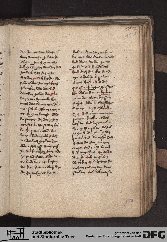 - TextGrid Repository (2017). Stadtbibliothek und Stadtarchiv Trier, 814/1340 4°: Sammelhandschrift. Inhalte. Stadtbibliothek und Stadtarchiv Trier Hs. 814/1340 4°. Dialog über die 10 Gebote. Blatt 150r. Blatt 150r. Virtuelles Skriptorium St. Matthias. Stadtbibliothek und Stadtarchiv Trier. https://hdl.handle.net/11378/0000-000A-0423-A