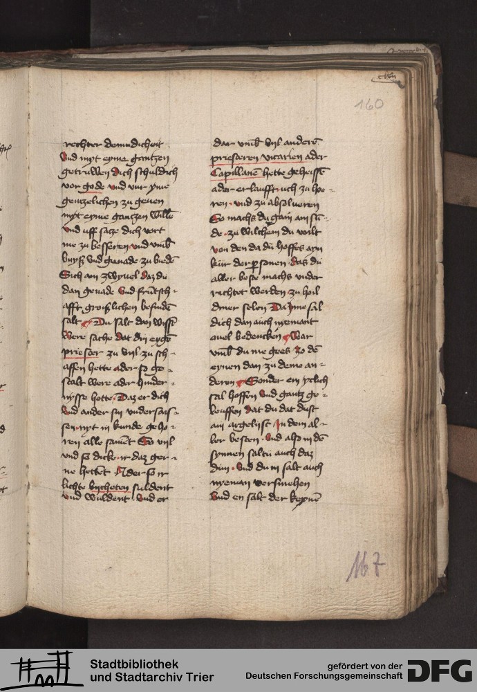 - TextGrid Repository (2017). Stadtbibliothek und Stadtarchiv Trier, 814/1340 4°: Sammelhandschrift. Inhalte. Stadtbibliothek und Stadtarchiv Trier Hs. 814/1340 4°. Dialog über die 10 Gebote. Blatt 159r. Blatt 159r. Virtuelles Skriptorium St. Matthias. Stadtbibliothek und Stadtarchiv Trier. https://hdl.handle.net/11378/0000-000A-0447-2