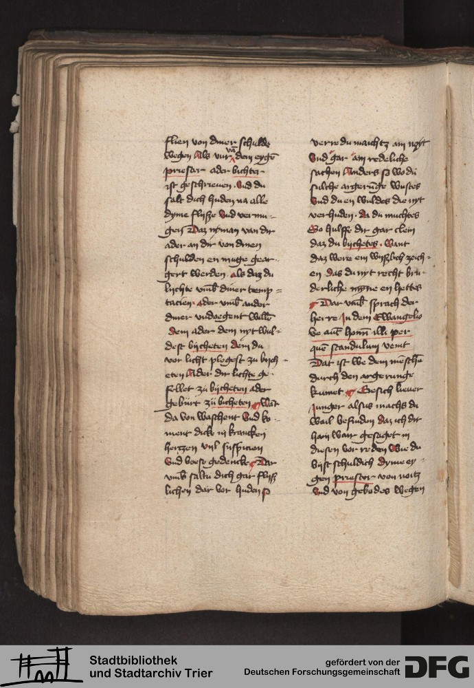 - TextGrid Repository (2017). Stadtbibliothek und Stadtarchiv Trier, 814/1340 4°: Sammelhandschrift. Inhalte. Stadtbibliothek und Stadtarchiv Trier Hs. 814/1340 4°. Dialog über die 10 Gebote. Blatt 159v. Blatt 159v. Virtuelles Skriptorium St. Matthias. Stadtbibliothek und Stadtarchiv Trier. https://hdl.handle.net/11378/0000-000A-0449-0