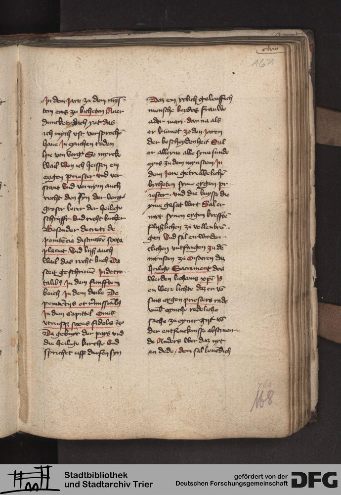 - TextGrid Repository (2017). Stadtbibliothek und Stadtarchiv Trier, 814/1340 4°: Sammelhandschrift. Inhalte. Stadtbibliothek und Stadtarchiv Trier Hs. 814/1340 4°. Dialog über die 10 Gebote. Blatt 160r. Blatt 160r. Virtuelles Skriptorium St. Matthias. Stadtbibliothek und Stadtarchiv Trier. https://hdl.handle.net/11378/0000-000A-044B-E