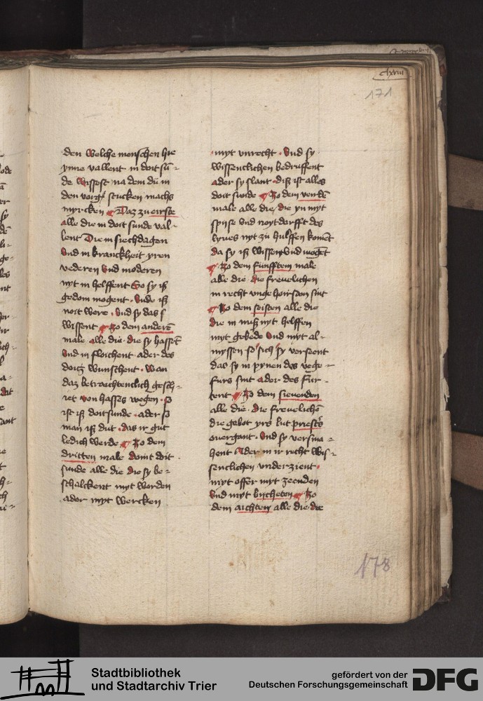 - TextGrid Repository (2017). Stadtbibliothek und Stadtarchiv Trier, 814/1340 4°: Sammelhandschrift. Inhalte. Stadtbibliothek und Stadtarchiv Trier Hs. 814/1340 4°. Dialog über die 10 Gebote. Blatt 170r. Blatt 170r. Virtuelles Skriptorium St. Matthias. Stadtbibliothek und Stadtarchiv Trier. https://hdl.handle.net/11378/0000-000A-0473-0