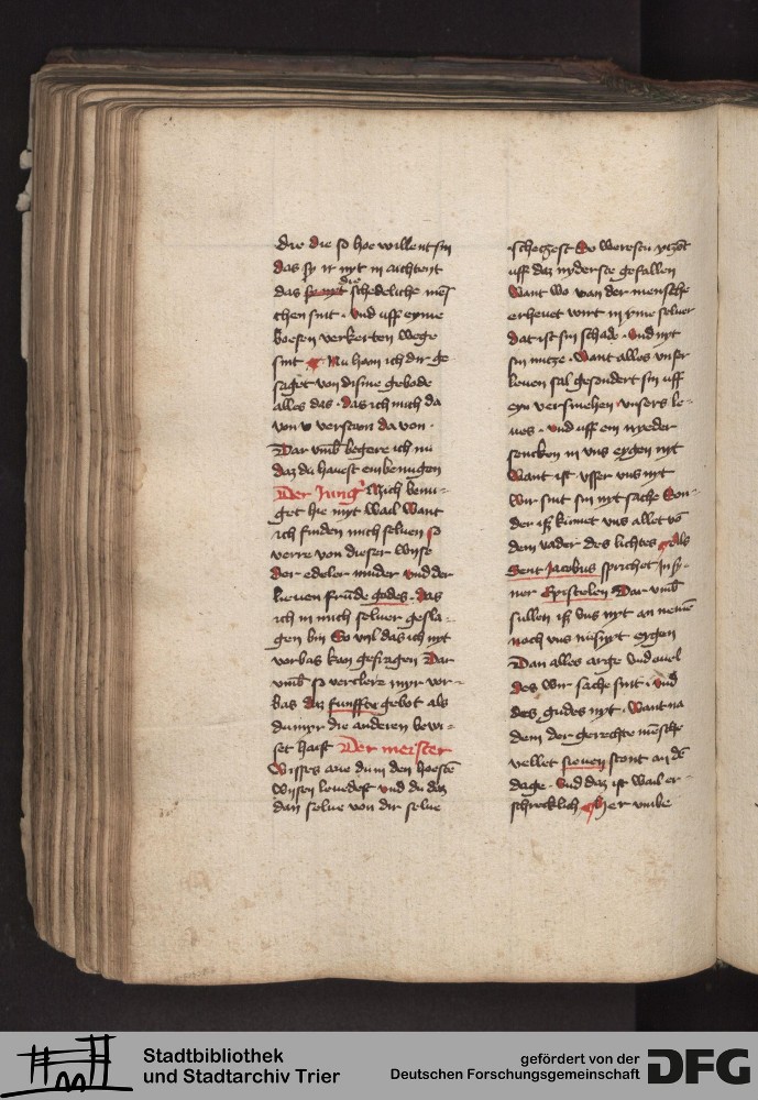 - TextGrid Repository (2017). Stadtbibliothek und Stadtarchiv Trier, 814/1340 4°: Sammelhandschrift. Inhalte. Stadtbibliothek und Stadtarchiv Trier Hs. 814/1340 4°. Dialog über die 10 Gebote. Blatt 176v. Blatt 176v. Virtuelles Skriptorium St. Matthias. Stadtbibliothek und Stadtarchiv Trier. https://hdl.handle.net/11378/0000-000A-048D-3