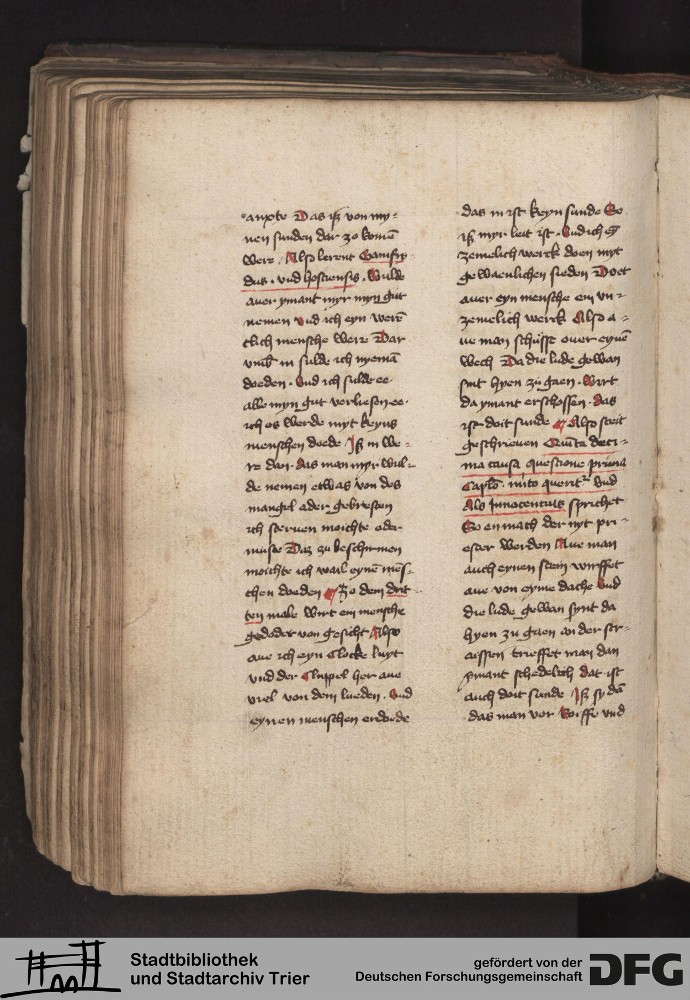 - TextGrid Repository (2017). Stadtbibliothek und Stadtarchiv Trier, 814/1340 4°: Sammelhandschrift. Inhalte. Stadtbibliothek und Stadtarchiv Trier Hs. 814/1340 4°. Dialog über die 10 Gebote. Blatt 179v. Blatt 179v. Virtuelles Skriptorium St. Matthias. Stadtbibliothek und Stadtarchiv Trier. https://hdl.handle.net/11378/0000-000A-0499-5
