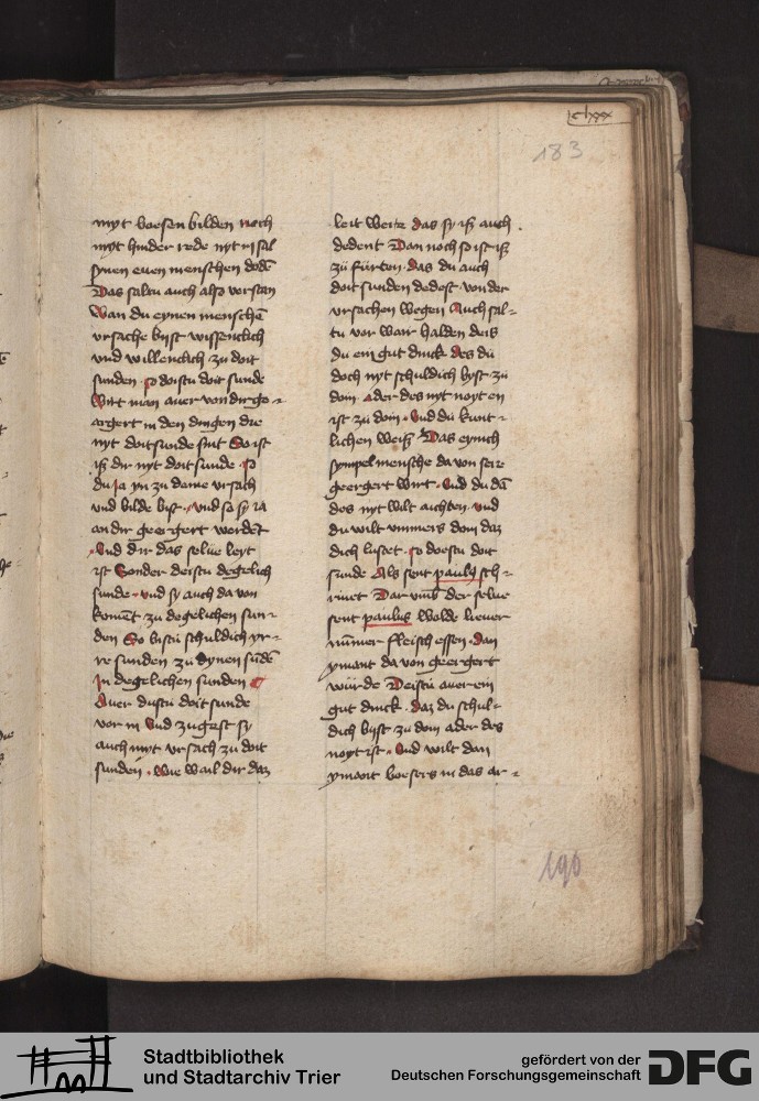 - TextGrid Repository (2017). Stadtbibliothek und Stadtarchiv Trier, 814/1340 4°: Sammelhandschrift. Inhalte. Stadtbibliothek und Stadtarchiv Trier Hs. 814/1340 4°. Dialog über die 10 Gebote. Blatt 182r. Blatt 182r. Virtuelles Skriptorium St. Matthias. Stadtbibliothek und Stadtarchiv Trier. https://hdl.handle.net/11378/0000-000A-04A3-9
