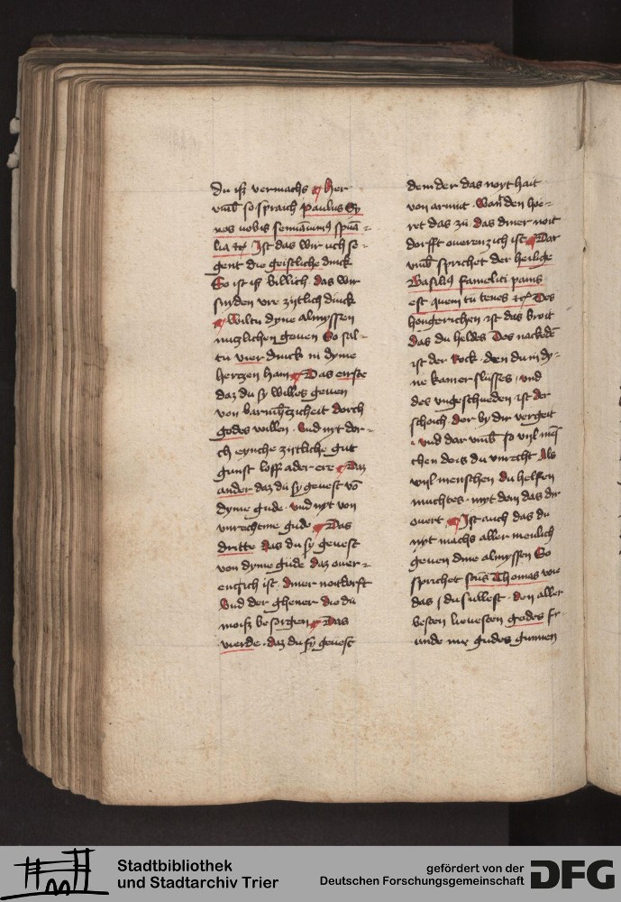 - TextGrid Repository (2017). Stadtbibliothek und Stadtarchiv Trier, 814/1340 4°: Sammelhandschrift. Inhalte. Stadtbibliothek und Stadtarchiv Trier Hs. 814/1340 4°. Dialog über die 10 Gebote. Blatt 186v. Blatt 186v. Virtuelles Skriptorium St. Matthias. Stadtbibliothek und Stadtarchiv Trier. https://hdl.handle.net/11378/0000-000A-04B5-5