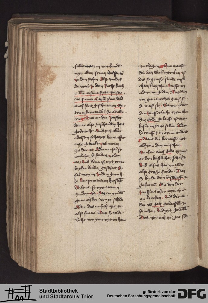 - TextGrid Repository (2017). Stadtbibliothek und Stadtarchiv Trier, 814/1340 4°: Sammelhandschrift. Inhalte. Stadtbibliothek und Stadtarchiv Trier Hs. 814/1340 4°. Dialog über die 10 Gebote. Blatt 195v. Blatt 195v. Virtuelles Skriptorium St. Matthias. Stadtbibliothek und Stadtarchiv Trier. https://hdl.handle.net/11378/0000-000A-04D9-D