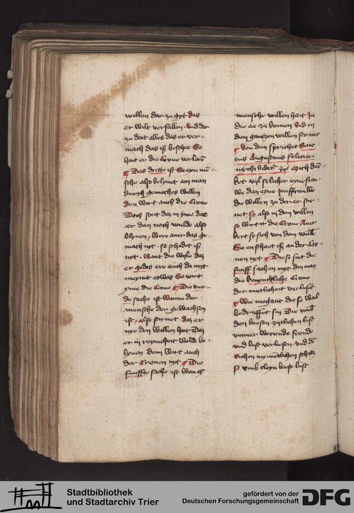 - TextGrid Repository (2017). Stadtbibliothek und Stadtarchiv Trier, 814/1340 4°: Sammelhandschrift. Inhalte. Stadtbibliothek und Stadtarchiv Trier Hs. 814/1340 4°. Dialog über die 10 Gebote. Blatt 198v. Blatt 198v. Virtuelles Skriptorium St. Matthias. Stadtbibliothek und Stadtarchiv Trier. https://hdl.handle.net/11378/0000-000A-04E5-F