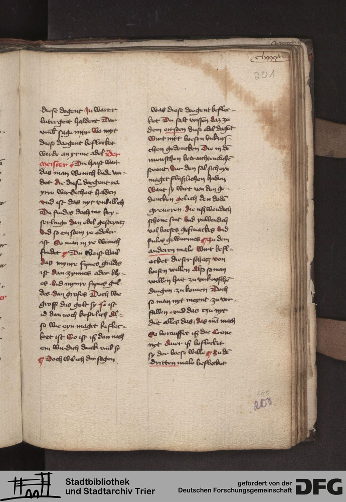 - TextGrid Repository (2017). Stadtbibliothek und Stadtarchiv Trier, 814/1340 4°: Sammelhandschrift. Inhalte. Stadtbibliothek und Stadtarchiv Trier Hs. 814/1340 4°. Dialog über die 10 Gebote. Blatt 200r. Blatt 200r. Virtuelles Skriptorium St. Matthias. Stadtbibliothek und Stadtarchiv Trier. https://hdl.handle.net/11378/0000-000A-04EB-9